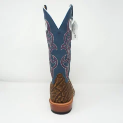 Let’s dress it up with these elephant print boots from Horse Power. The elephant print stands out with the blue jean shaft with complimenting blue, red and white stitching. These are a full grain leather with a 13″ shaft and western heel.