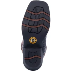 This kid’s square toe boot from Dan Post features a gorgeous black foot and brown upper with tan and red stitching! There is a comfort cushion for comfortable feet and a rubber sole for no falling!