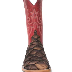 These boots have a spicy red top and the texture is crackled and glossed. Big bass scales are super tough and stand out from your other cowgirl boots. This Macie Bean style is perfect for all-day wear. They come with a square toe foot, nailed arch support, and a hybrid outsole that protects the leather from signs of wear