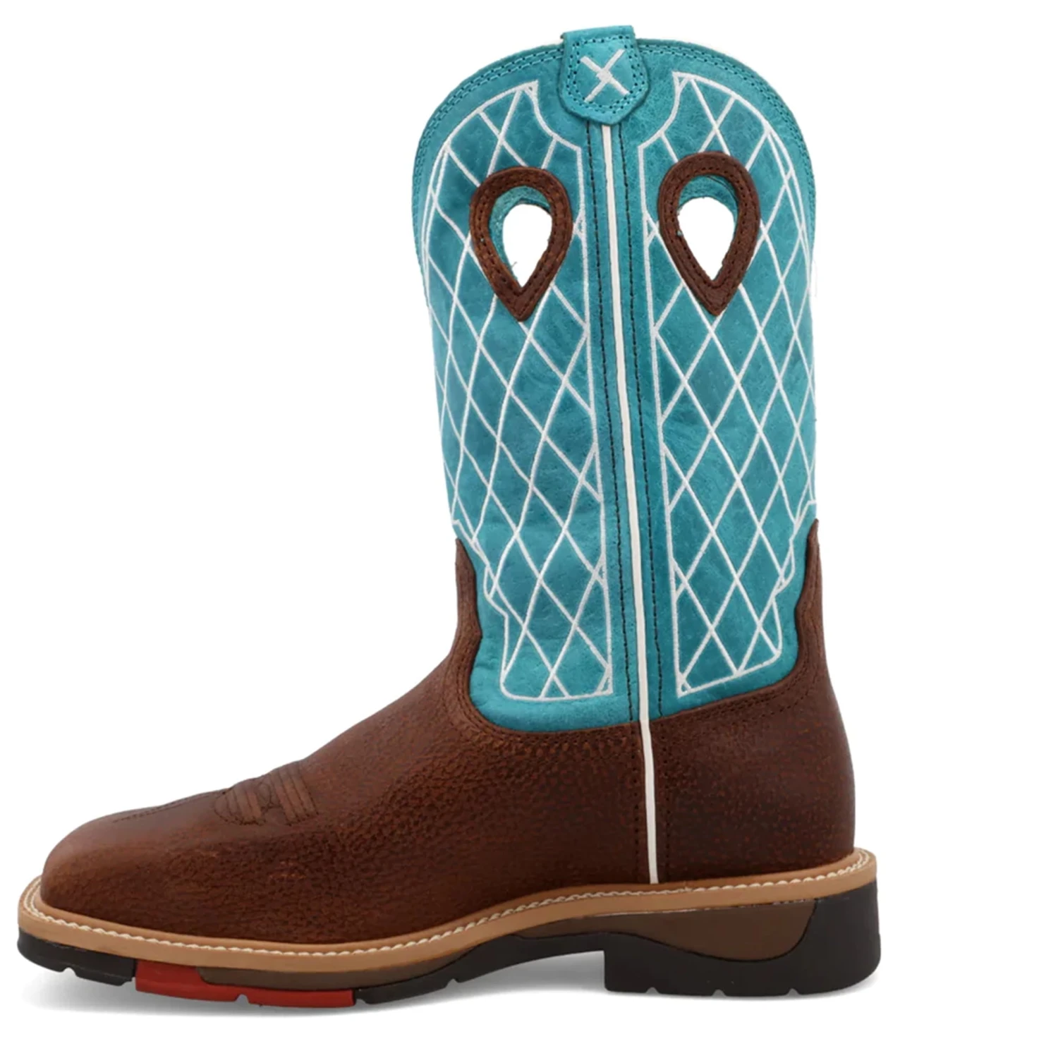 This Men’s 12″ Steel Toe Lite Western Work Boot is handcrafted with signature full-grain leathers. On the inside, they have added air-mesh lining, taped seams, and a Twisted X® molded footbed for additional comfort. These comfort features are paired with a double-stitched storm welt, full-length composite insole, a lightweight full-length compression-molded EVA midsole, and an oil/slip-resistant molded-rubber outsole to produce an industry leading work boot.
