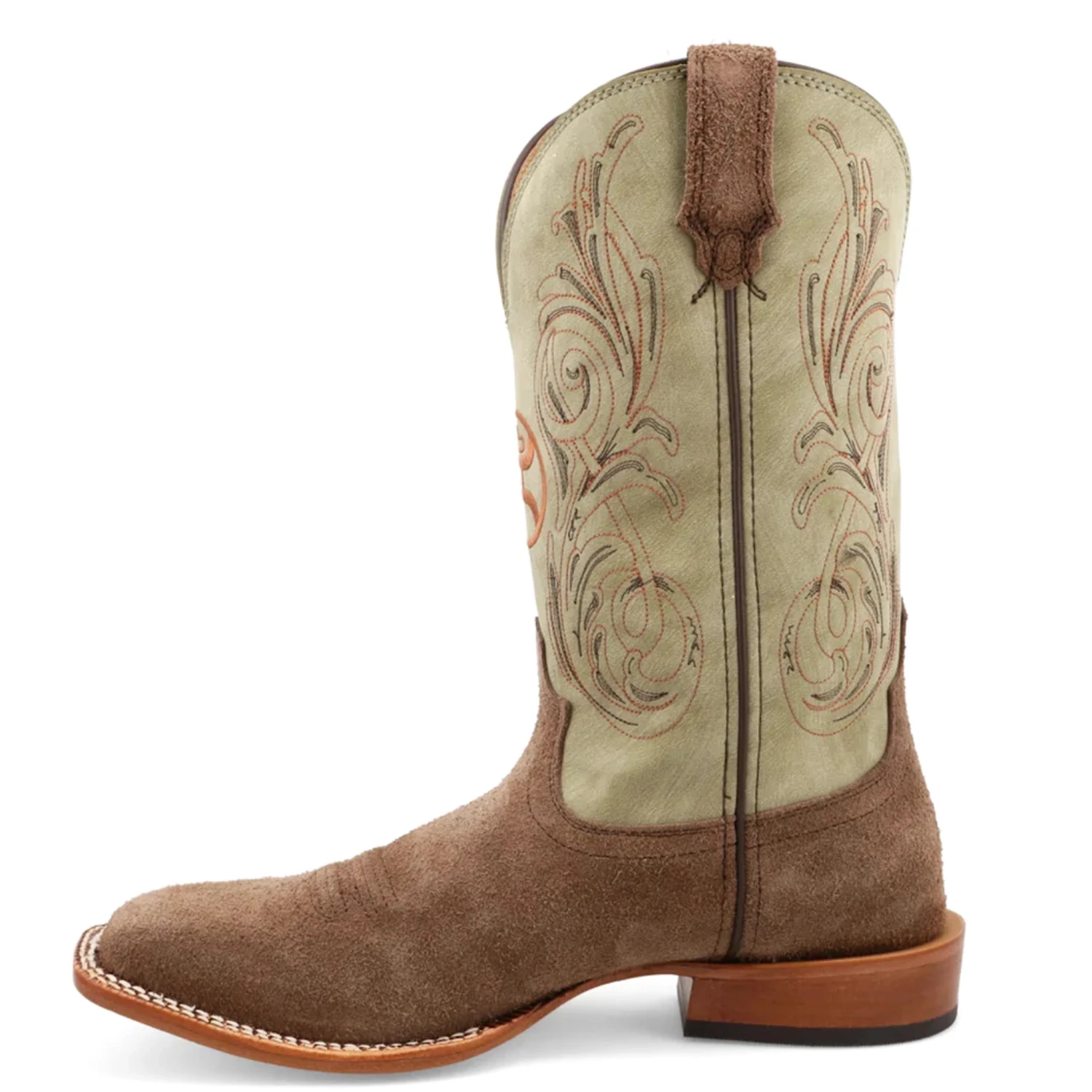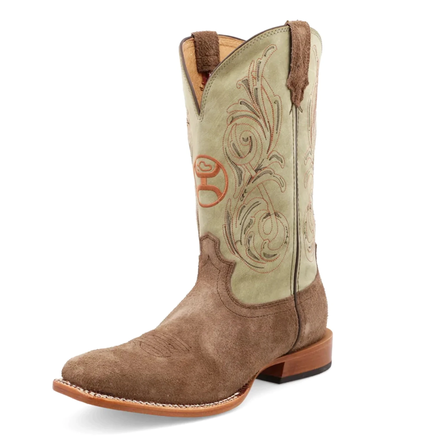 Twisted X Men’s 12″ WS Toe Hooey® Boot showcases the Hooey® brand’s distinctive styling. These boots are crafted with an attractive full-grain roughout leather and leatherTWX™ shaft, Leather TWX is 80% recycled leather that would otherwise end up in the landfill. Leather lining with taped interior seams. Twisted X® CellSole® comfort technology is an interconnected network of comfort cells that compress and rebound with every step. These Hooey® boots feature a leather outsole and walking heel with a spur shelf.